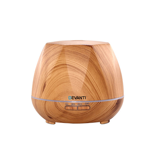 Devanti Ultrasonic Aroma Aromatherapy Diffuser Oil Electric LED Air Humidifier 400ml Light Wood