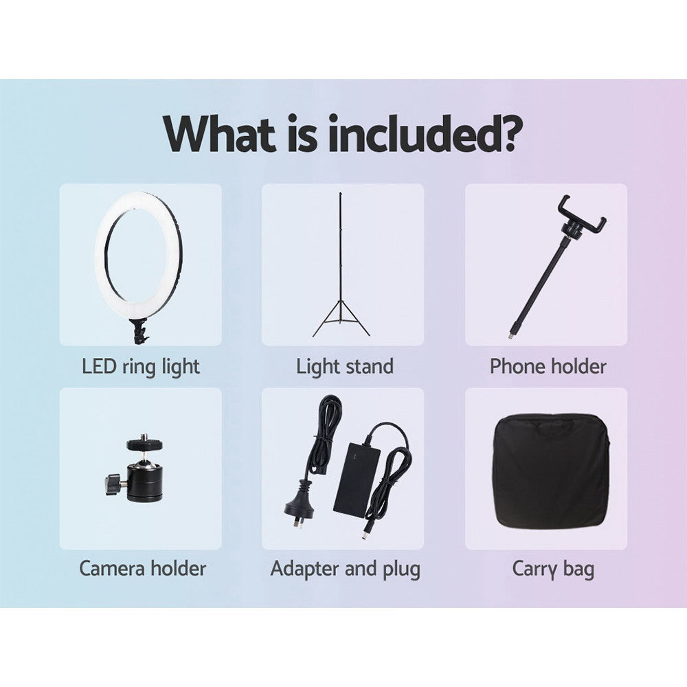 19" LED Ring Light 6500K 5800LM Dimmable Diva With Stand Make Up Studio Video