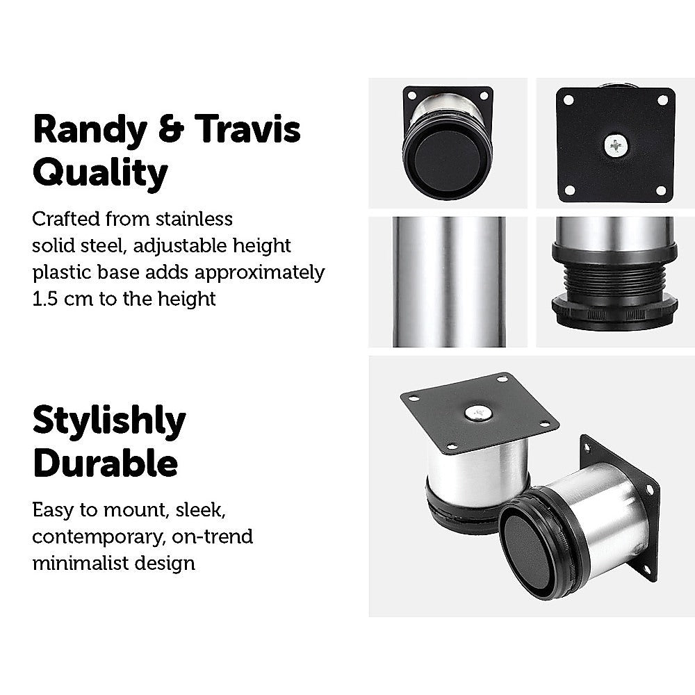 Their neutral silver-and-black colour looks great no matter what your room's colour palette, while their adjustable base allows you to custom-tailor it to your exact needs. With their low profile and stainless steel construction, these feet are as sturdy as can be – rust-resistant, too, thanks to the stainless steel and plastic material used in making them.