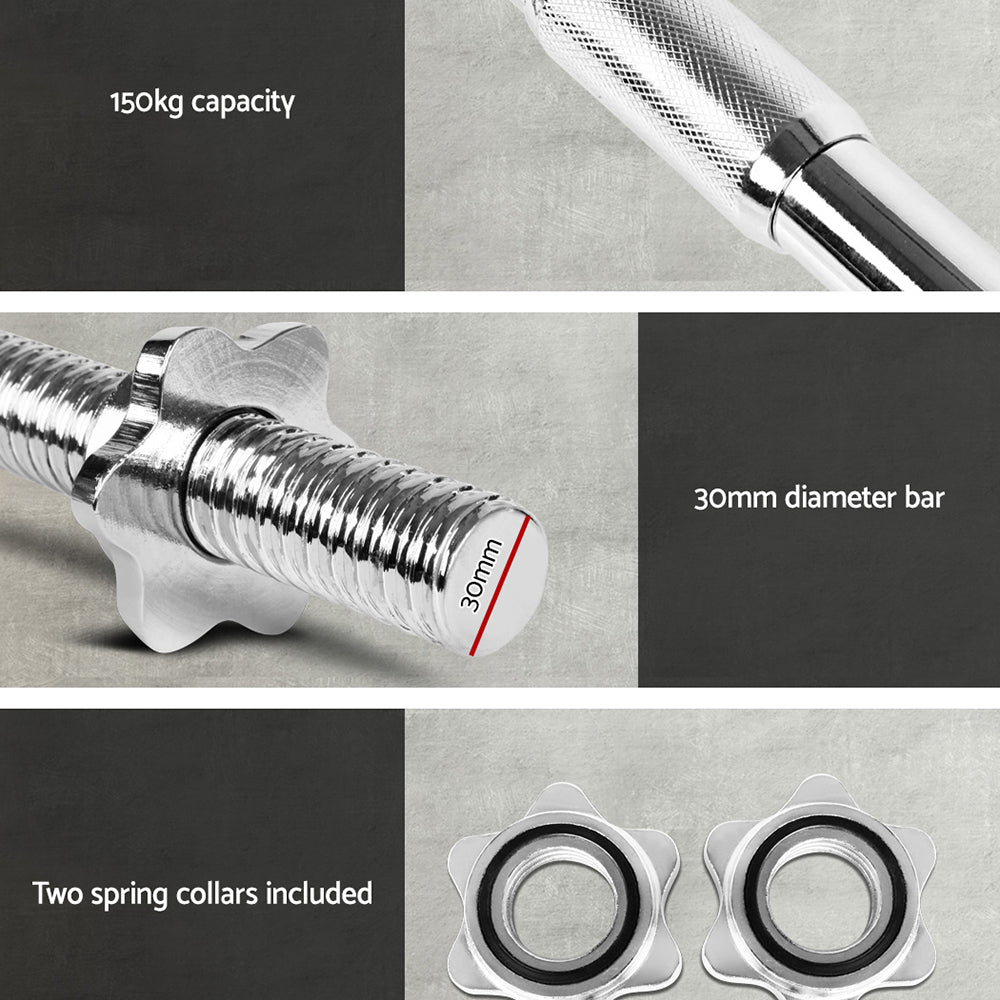 Finding an economical way to maintain your fitness? Do it at home with this solid chrome plated steel Barbell Bar. You can use the bar with most standard 31mm - 35mm hole weight plates, and it holds up to 150kg so you can work out at any weight.
