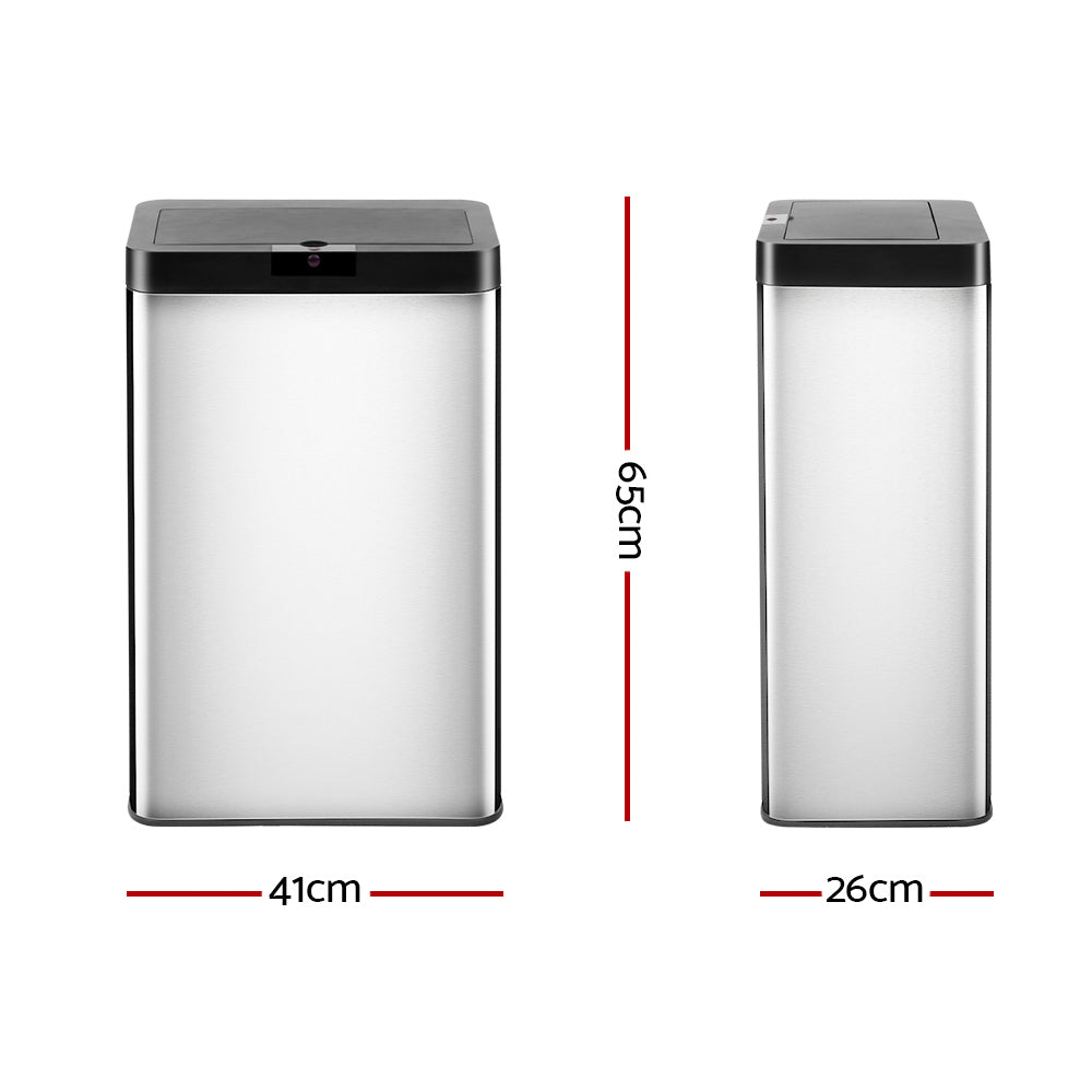 60L Stainless Steel Sensor Bin Rubbish Trash Bins Motion Automatic AC Adaptor