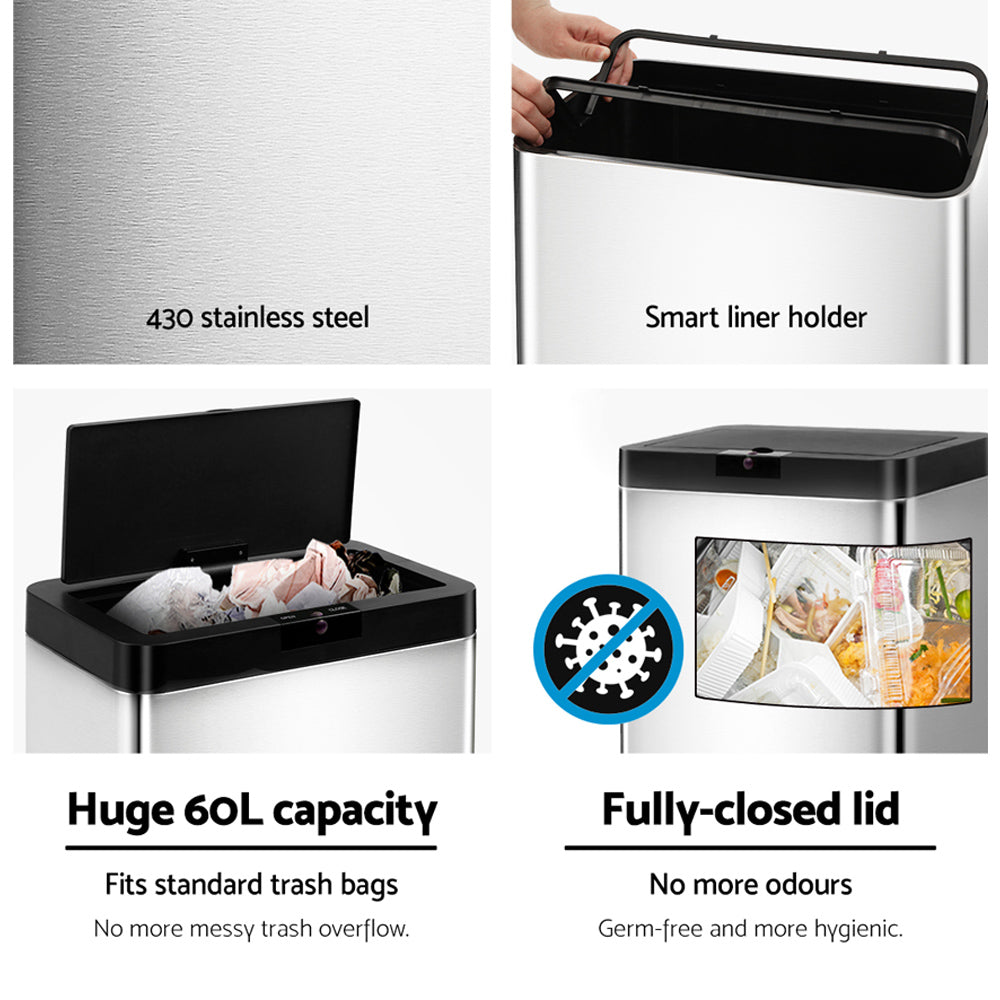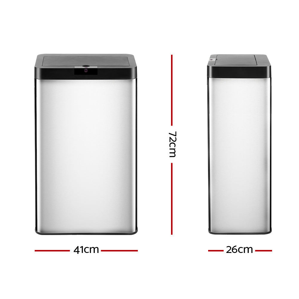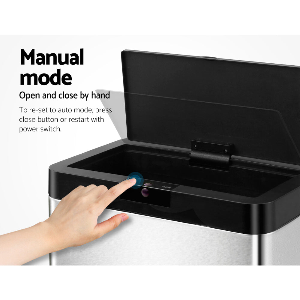 70L Stainless Steel Sensor Bin Rubbish Trash Bins Motion Automatic AC Adaptor