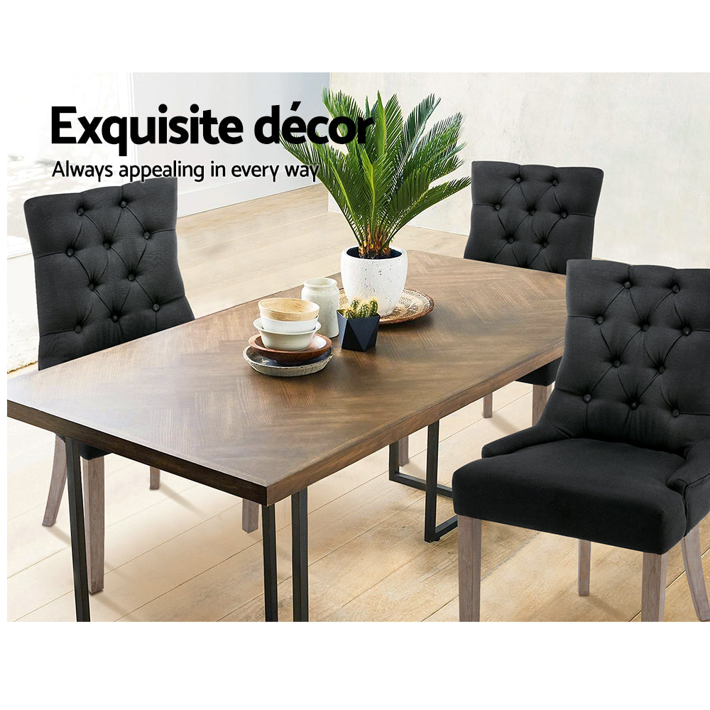 Artiss Dining Chairs Chair French Provincial Wooden Fabric Retro Cafe Black x1