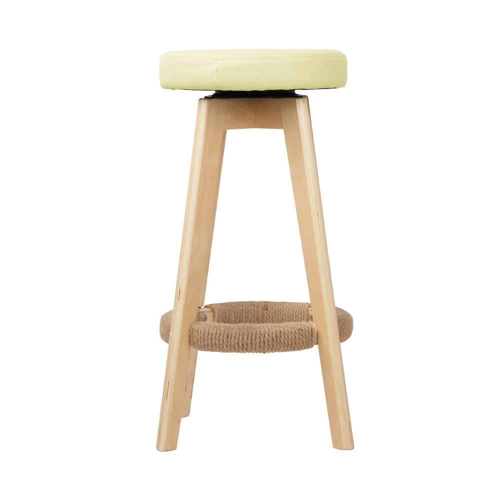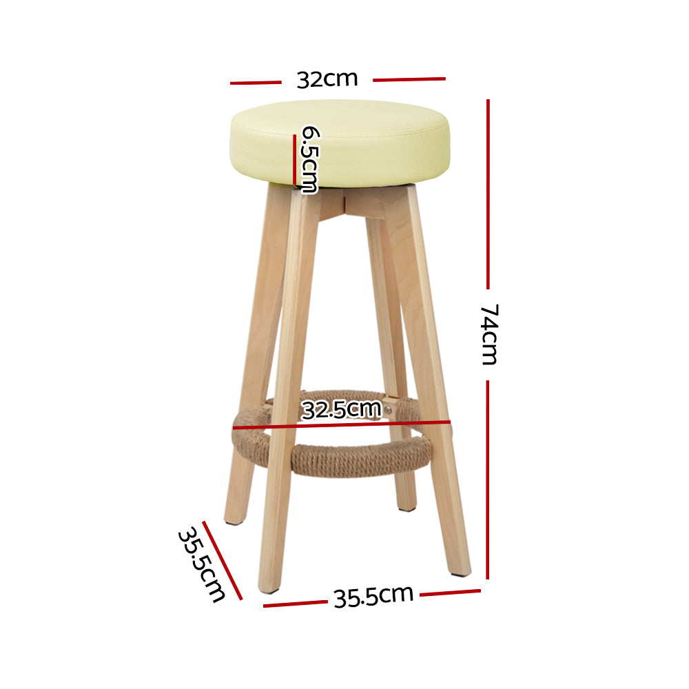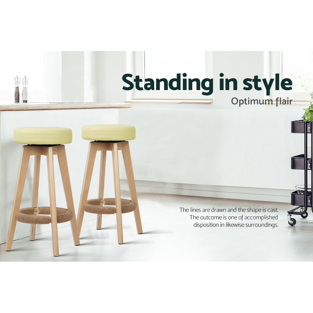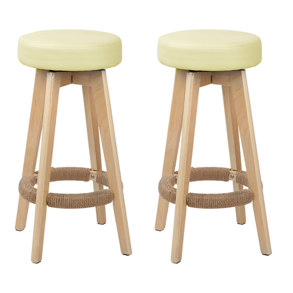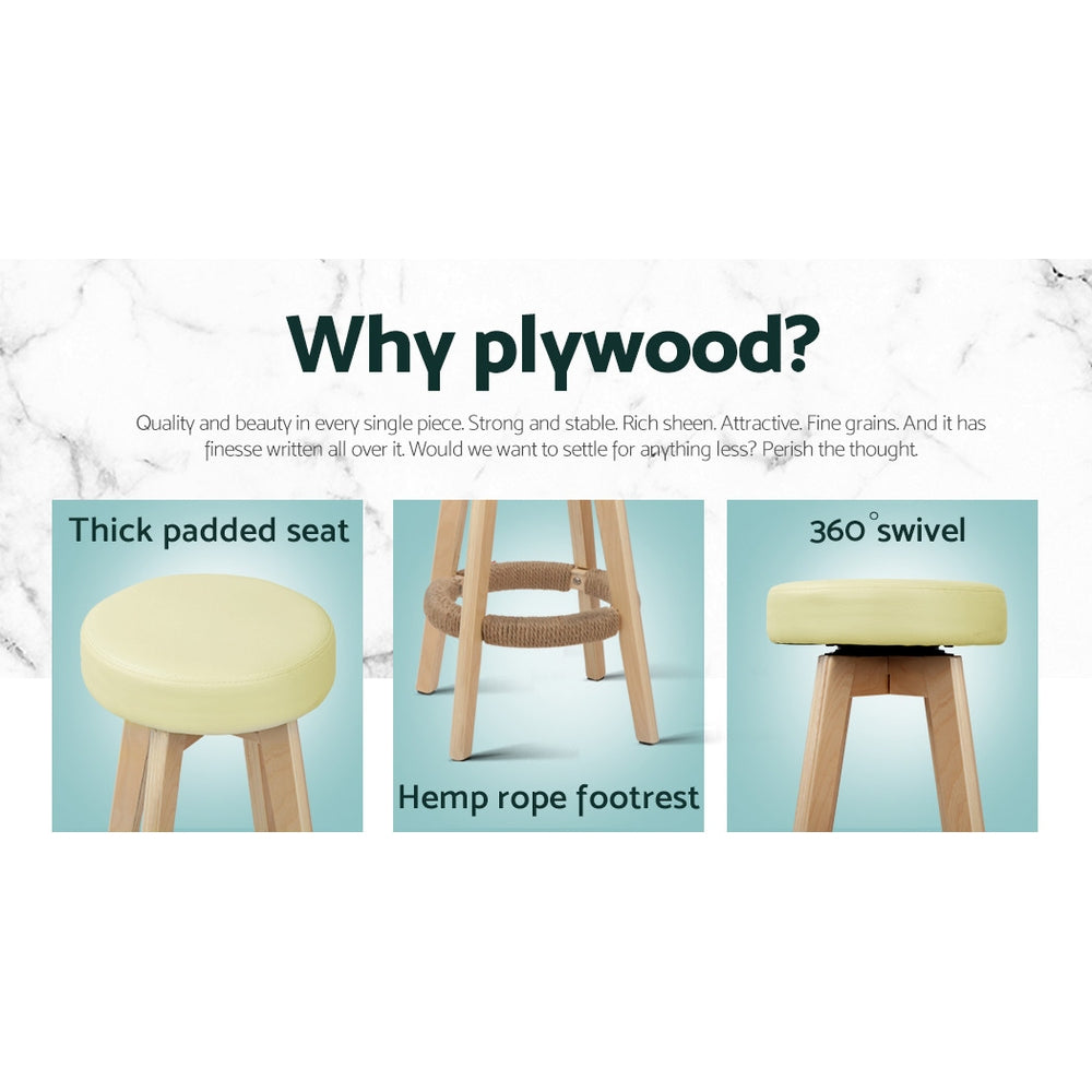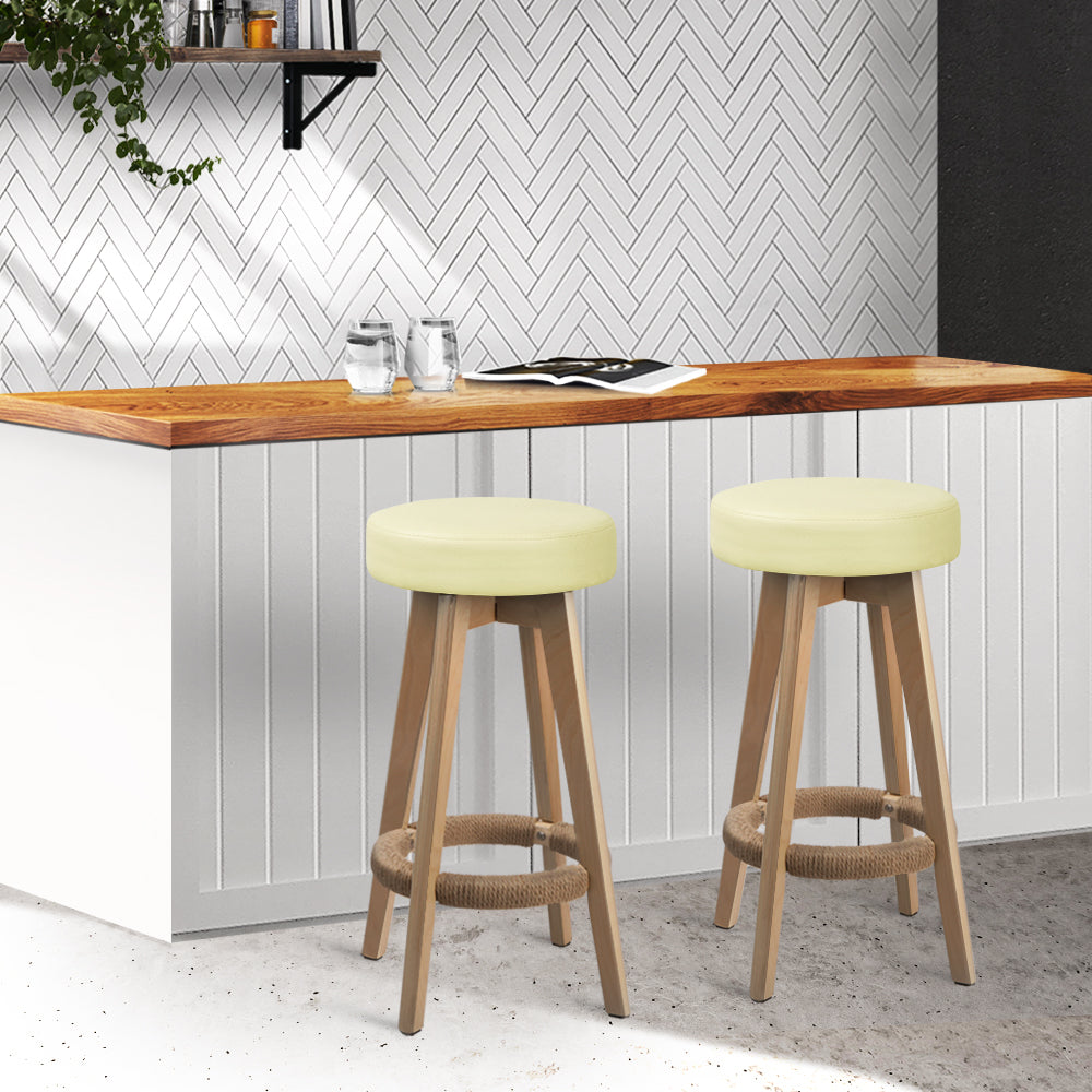 Artiss Set of 2 Bar Stools Wood Swivel PU Leather - Cream