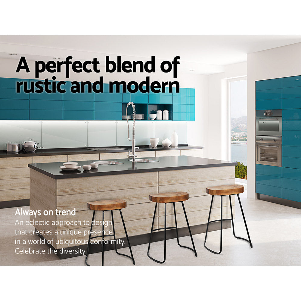 Artiss Set of 2 Elm Wood Backless Bar Stools 65cm - Black and Light Natural