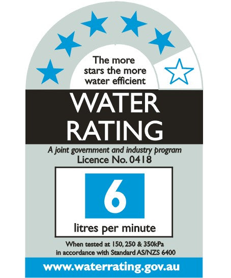 5-star WELS rating; water efficiency of 6 Litres per minute