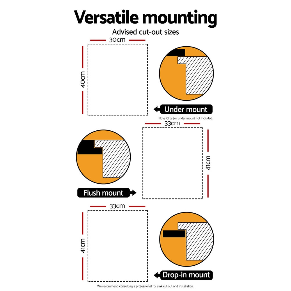 Cefito 34cm x 44cm Stainless Steel Kitchen Sink Under/Top/Flush Mount Silver