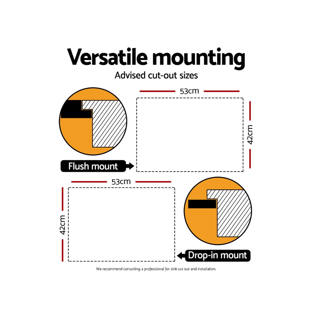 Cefito 55cm x 45cm Stainless Steel Kitchen Sink Flush/Drop-in Mount Silver