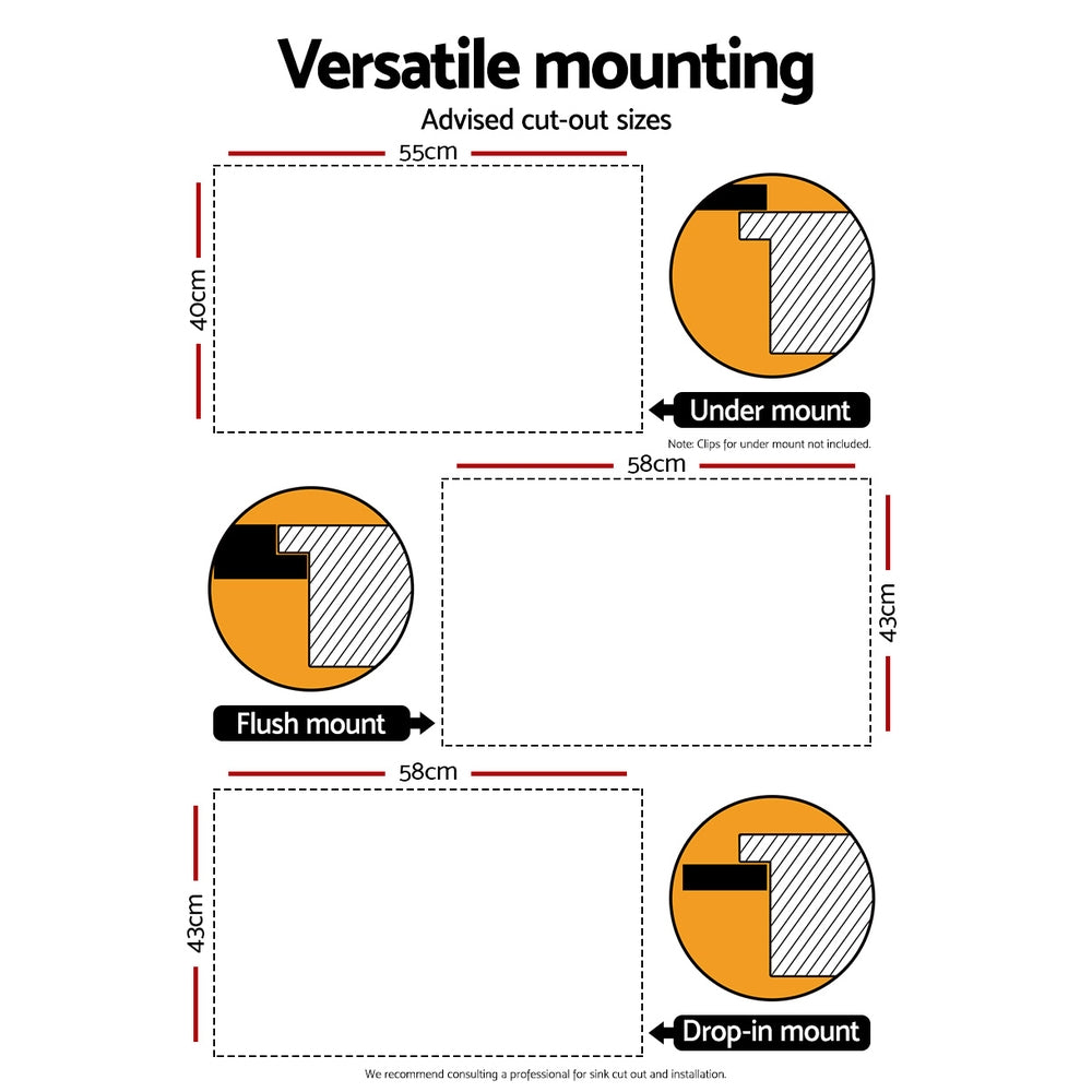 Cefito 60cm x 45cm Stainless Steel Kitchen Sink Under/Top/Flush Mount Black