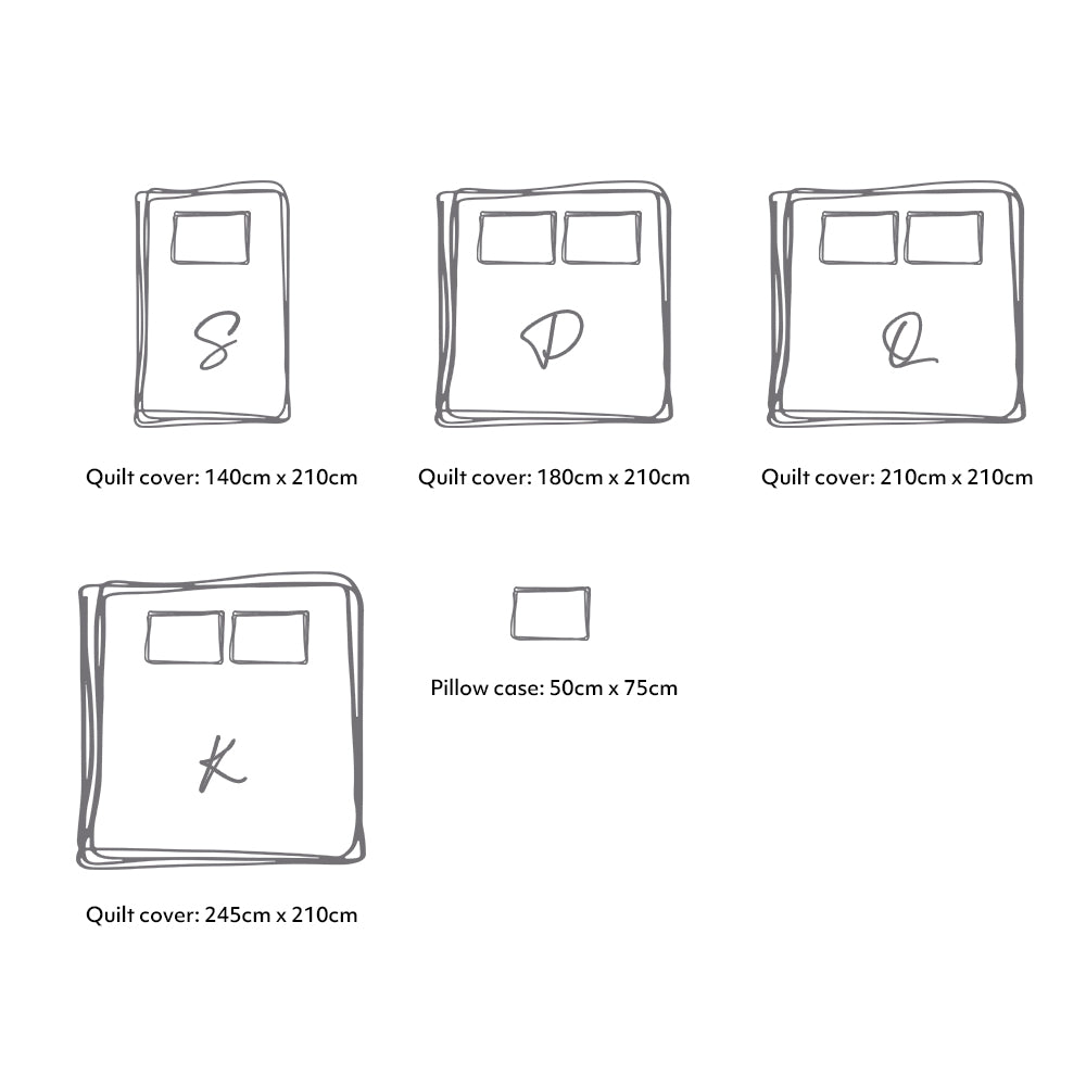 Queen quilt cover: 210cm x 210cm