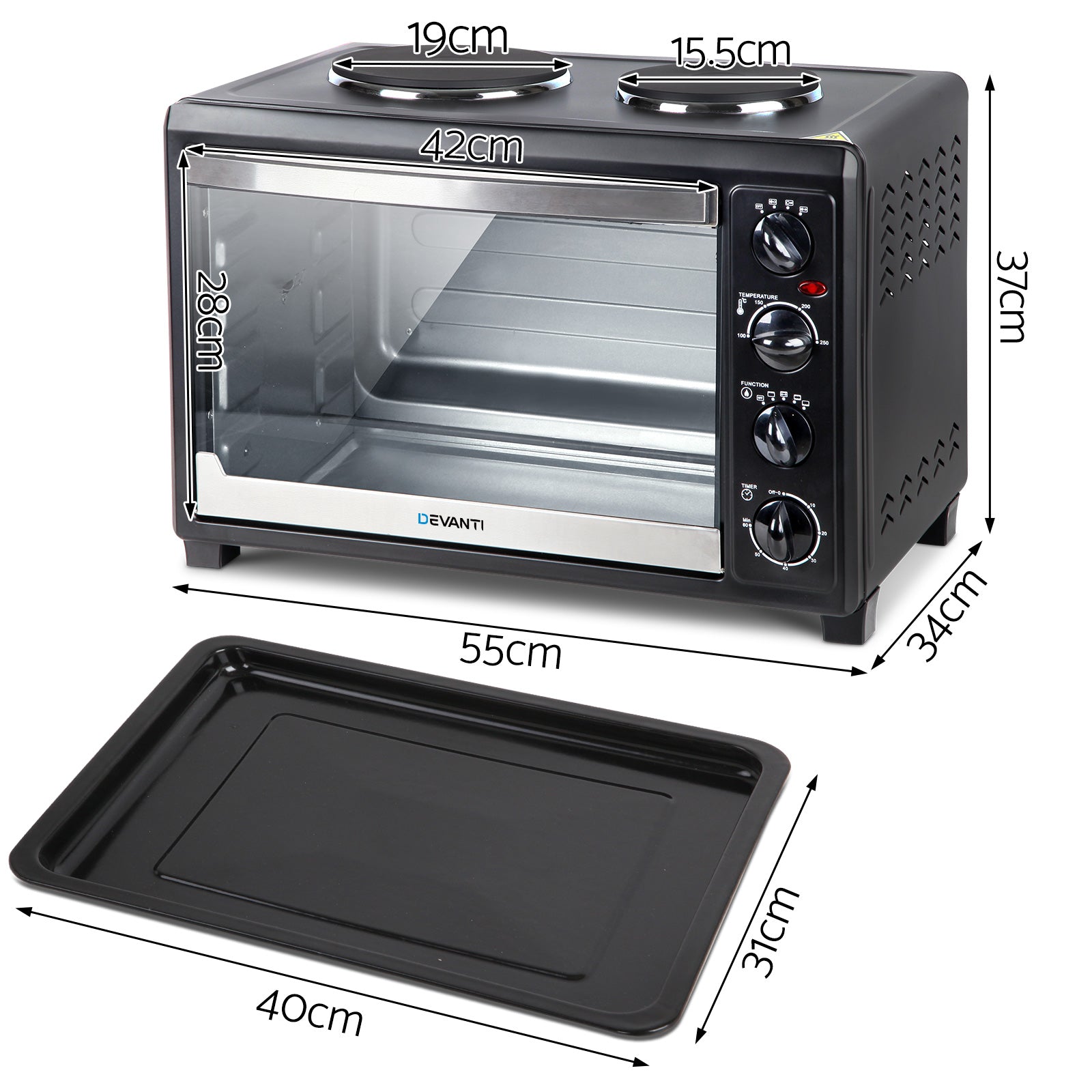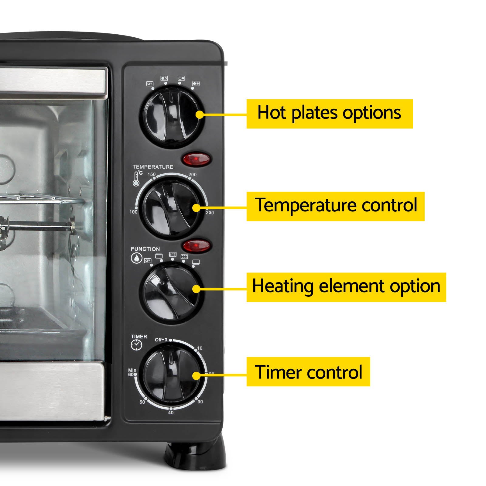 With the quality glass door and built in light, you can always monitor the progress of your cooking and adjust the temperature as needed, you'll never come out with overcooked dishes or underdone cakes on the table any more! Top and base heating options also allows you to control the heating more efficiently for a perfectly done dish/ cake! It gives you unlimited options when it comes 45L capacity, a double hot plate and rotisserie function.