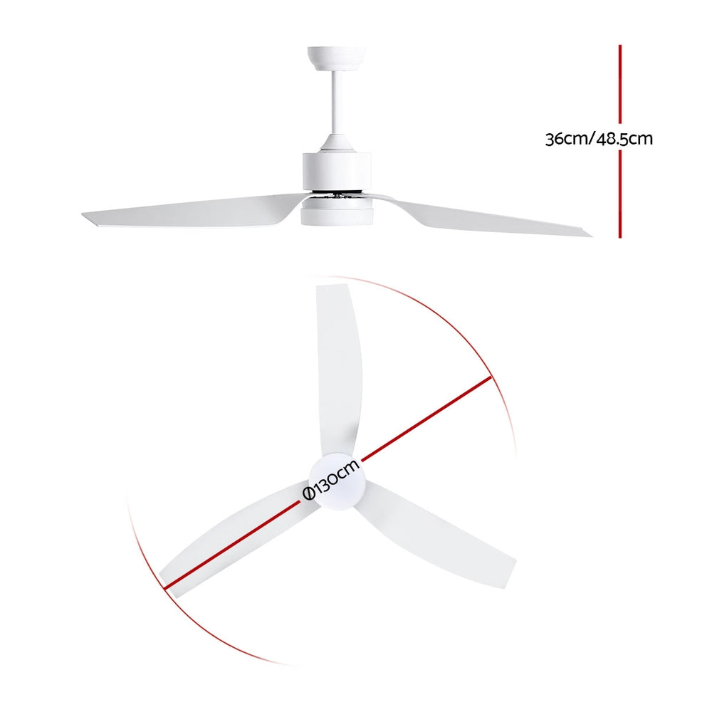 Devanti 52'' Ceiling Fan With LED Light DC Motor Remote Control 1300mm White