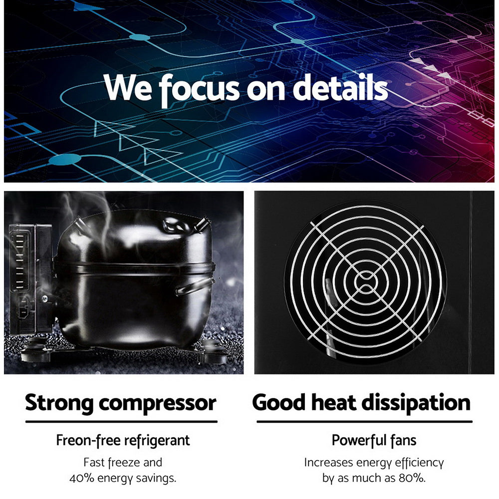 Need ice cubes on demand fast and without the hassle of driving to the nearest servo or supermarket to get some? Well your wish has just come true with the Devanti Ice Cube Maker. Capable of making 9 ice cubes in every 6 minutes depending on the water and ambient temperatures, the portable ice cube maker can also do two different sizes of its crystalline bullet-shaped ice cubes. That works out to about 12kg on demand over a 24-hr period. Just select your size option on the LED control panel and press start. You can easily monitor the water level or when the ice cube container is full and there is an automatic indication when the water level is low. Other great features include a large heat dissipation fan for excellent cooling, convenient water drainage plug and non-slip feet for a stable operation. Not least, the ensemble works ever so quietly and complies with current Australian standards.