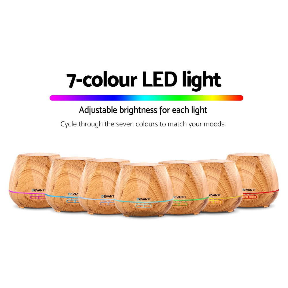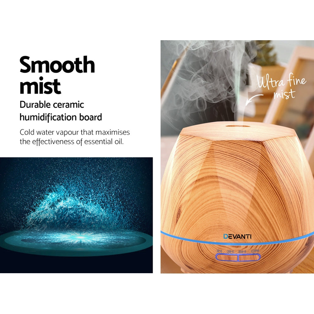 Devanti Ultrasonic Aroma Aromatherapy Diffuser Oil Electric LED Air Humidifier 400ml Light Wood