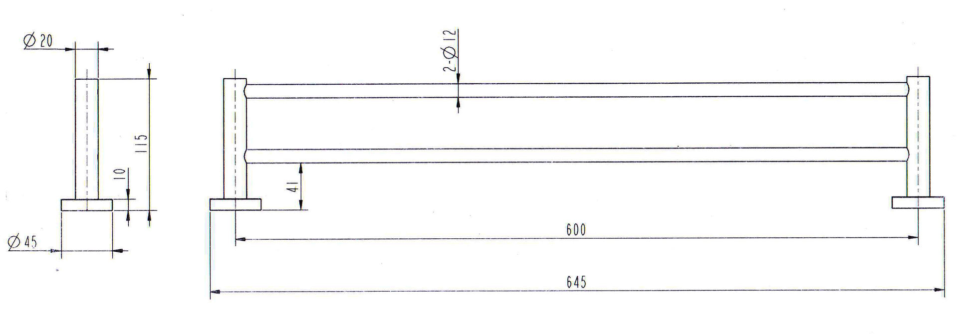 The bars have a width of 600mm, which could accommodate a single towel or multiple towels. The diameter of the base plate is 45mm and the unit has a depth of 115mm.