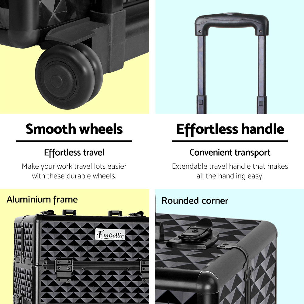 Embellir 7 in 1 Portable Cosmetic Beauty Makeup Trolley - Diamond Black