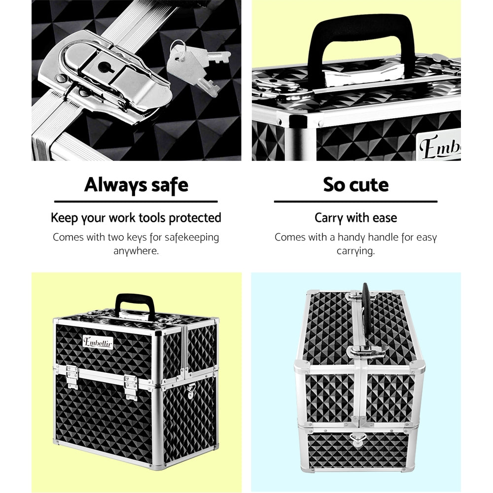 Embellir Portable Cosmetic Beauty Makeup Carry Case - Diamond Black