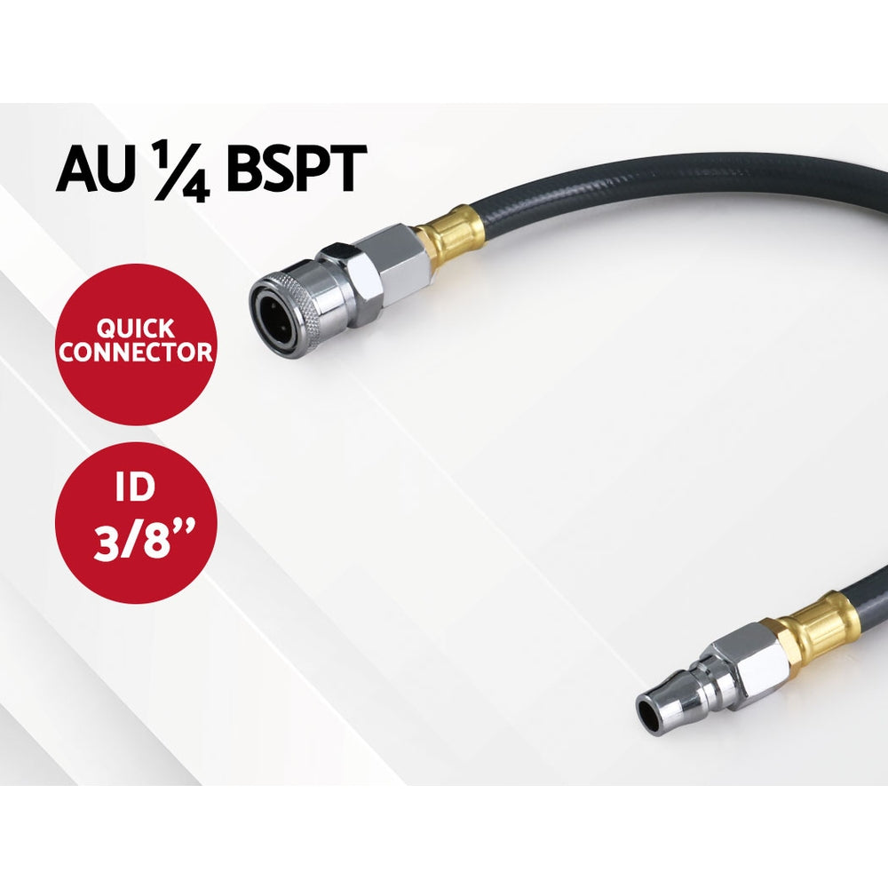 If you are looking for a long and retractable air hose reel for your home or commercial workshop, then consider the GIANTZ Wall Mounted Retractable Air Hose Reel. With a 20m or 10m hose (depending on model) that offers you unbridled movement around your workshop from one connection point, the retractable air hose reel comprised a UV-resistant PVC hose with premium stainless steel ¼" BSPT AU quick-connect fittings. Linking the hose to a compressor is easy via the leader hose that connects to the side of the unit. The spring-loaded hose utilises an incremental feed lock that allows the extended hose to stay put at its place. And after the work is done, just give a hose a firm tug to activate its auto rewind function. As it rewinds, its self-layering mechanism will ensure that the winding is done neatly and evenly within the casing. The air hose reel can be swivelled 180° when mounted on the wall to allow easy hose movement around corners. If required, the entire unit can be removed by slotting out the quick-release hinge rod and secured with the same at another location within the workplace. Other handy features include a rear leader hose holster that provides a safe and tidy connection between the compressor and reel, an internal access hatch located at the top of the casing and a swivel carry handle.