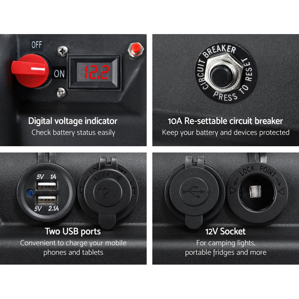 GIANTZ Battery Box 12V Camping Portable Deep Cycle AGM Universal Large USB Cig