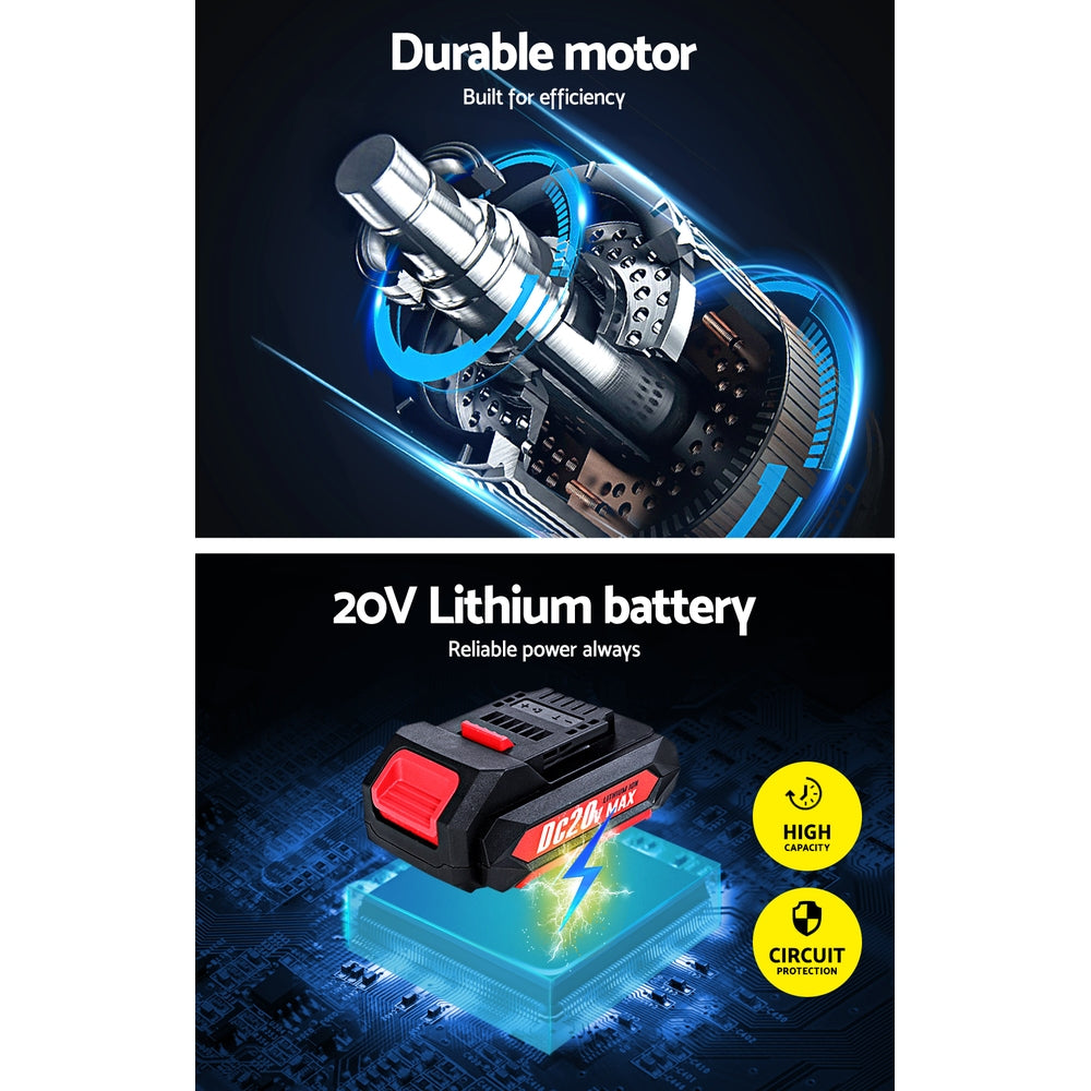The Giantz Impact Wrench makes removing and tightening nuts fast and uncomplicated. Powered by a 20V lithium-ion battery, this cordless tool brings the power and effectiveness for the job at hand. The ? inch square chuck tool packs a delivers up to 250N/m of torque to make loosening or tightening of the toughest nuts and bolts like a walk in the park. The wrench comes with a quick-release chuck for safe and secured hold and a well-balanced and highly responsive trigger. Smart control comprises quick-release battery pack button, handy charge indicator, LED work light and a thermoplastic rubber-over moulded handle. The driver also allows for ample heat dissipation to enable longer operating hours. Not least, your purchase comes with various accessories to help you get started on the task with minimum hassle.