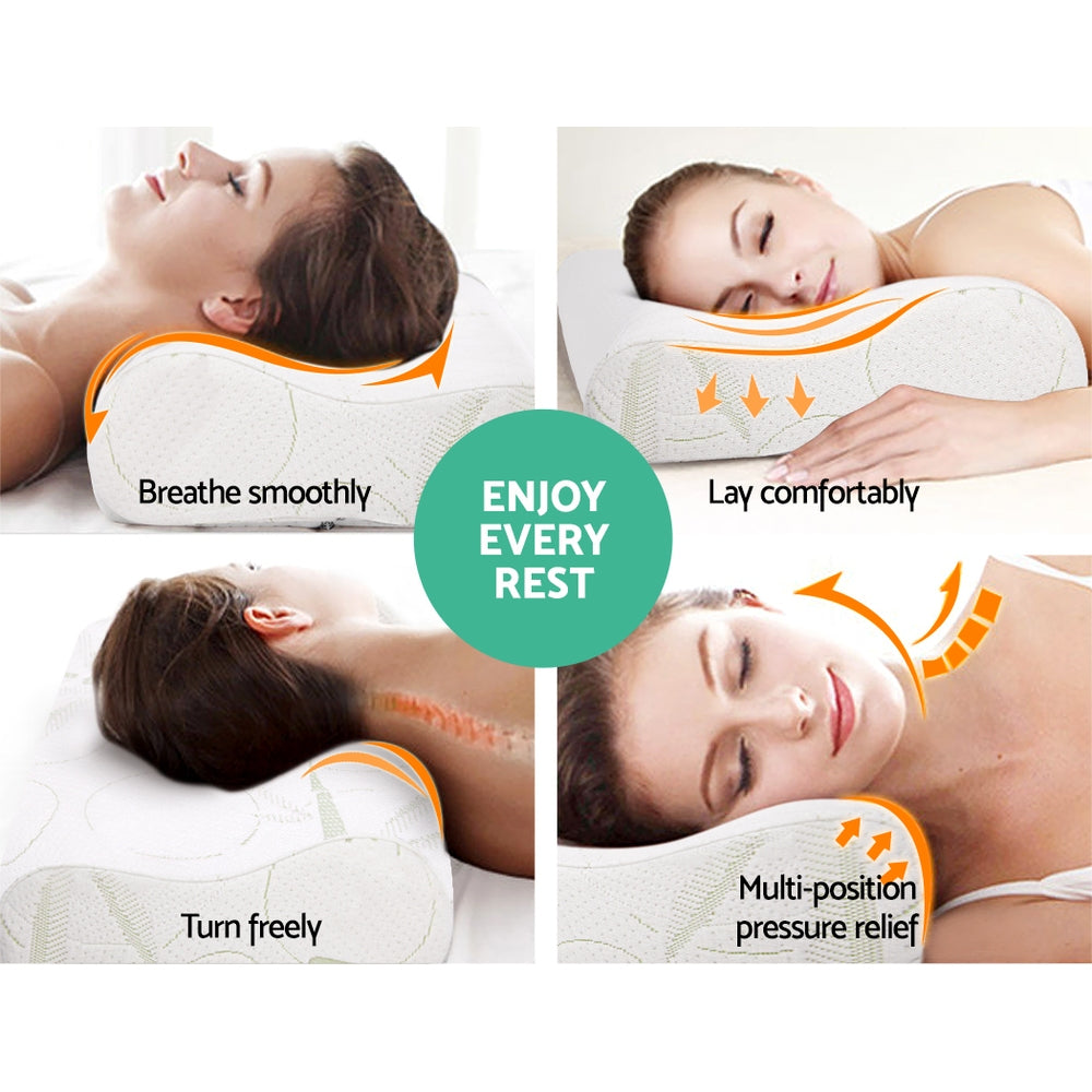 2 x Bamboo Fabric Cover Contour Memory Foam Pillow 50 x 30 cm