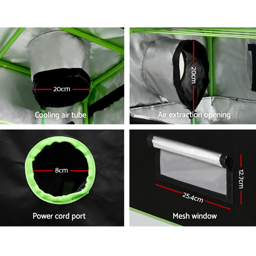 Lightweight and portable with a weather proof 600D Oxford fabric exterior and aluminium foil inner lining, our Grow Tent is equipped with all the necessary essentials to facilitate healthy growth of your plants and vegetables. These include fittings and spaces for various sized fans, lights and filters; two power cords ports; easy accessibility with zipped and velcroed covers; spacious interior and a sturdy, power-coated steel frame for longlasting use in typical Australian climatic conditions. Not least, the entire unit also rests on a removable waterproof floor tray.