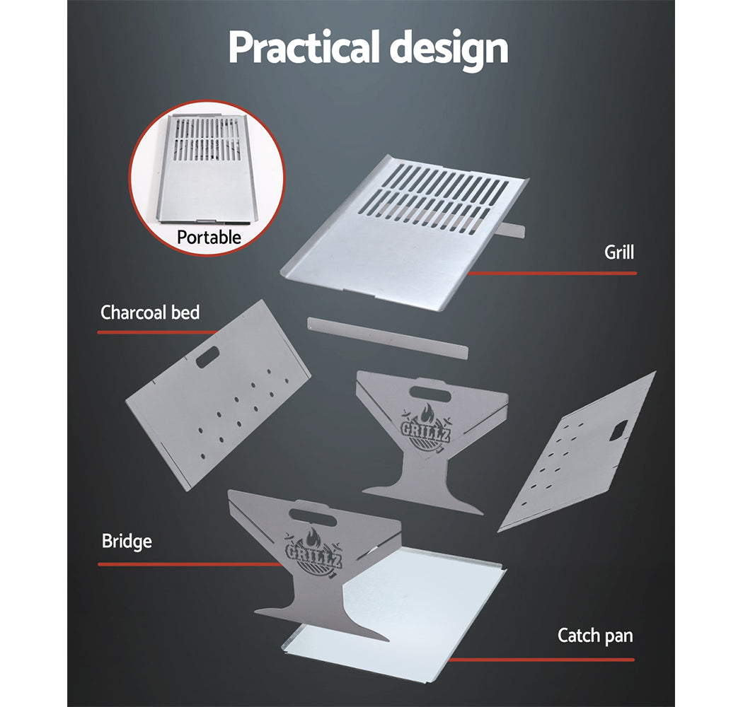 Grillz Fire Pit BBQ Outdoor Camping Portable Patio Heater Folding Packed Steel