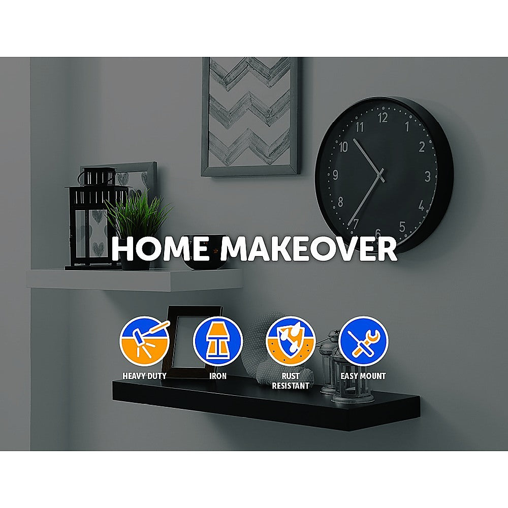 1 x Industrial Black Iron Pipe Bracket Wall Mounted Floating Shelf - Set of 2