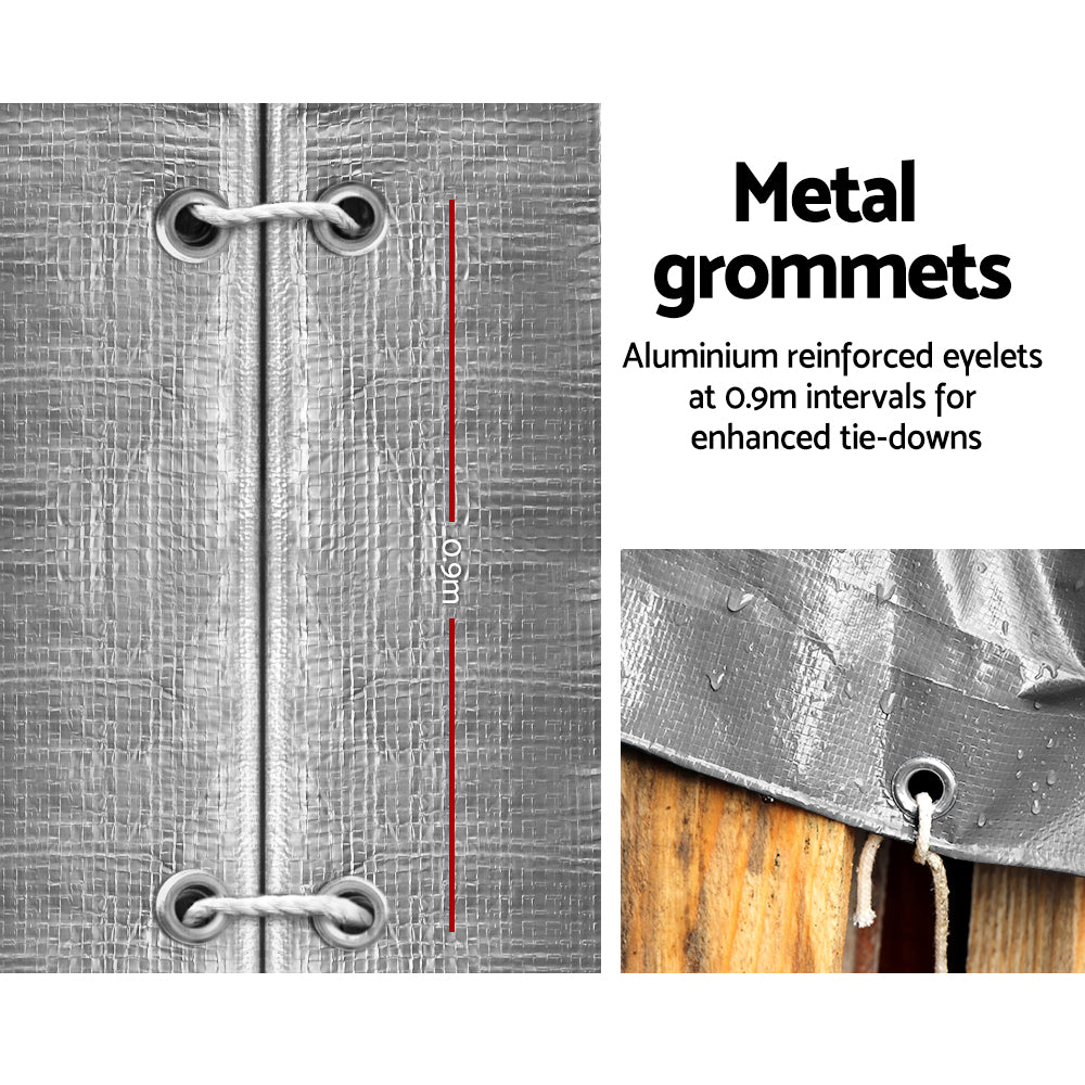 Instahut 3.6x6m Tarp Camping Tarps Poly Tarpaulin Heavy Duty Cover 180gsm Silver