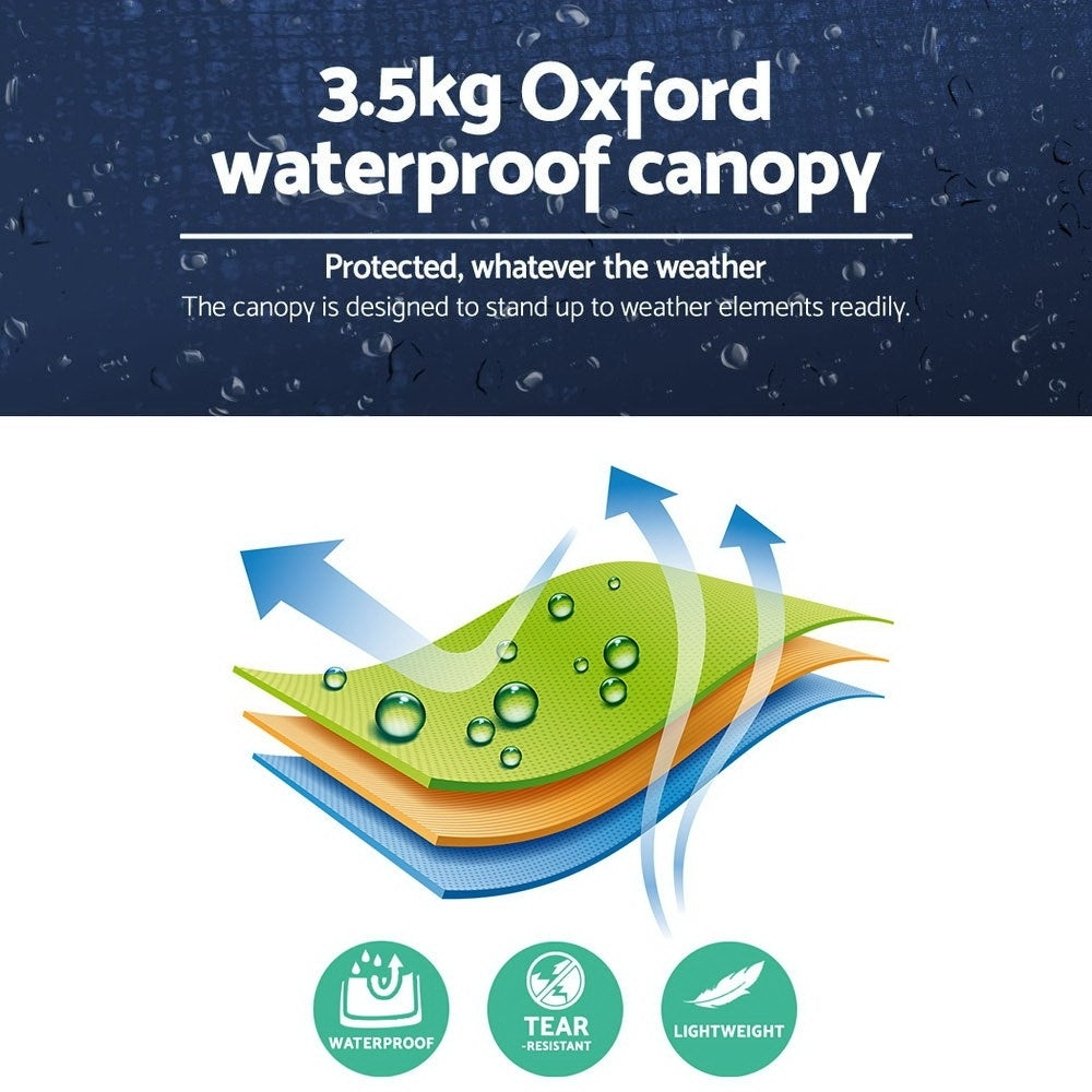 Featuring a high-density, longlasting PVC-coated oxford fabric with effective UV and water repellent treatments, our Instahut Pop-Up Gazebo provides a lovely ground and canopy coverage of 300 x 300cm. It is perfect for all your upcoming outdoor activities, as a sunshade station as well as a shelter for unexpected rains. Fitted with quick and convenient fast attachments, smoothly glide on nylon insert for effortless set up, the gazebo roof is designed to make things happen instantly.