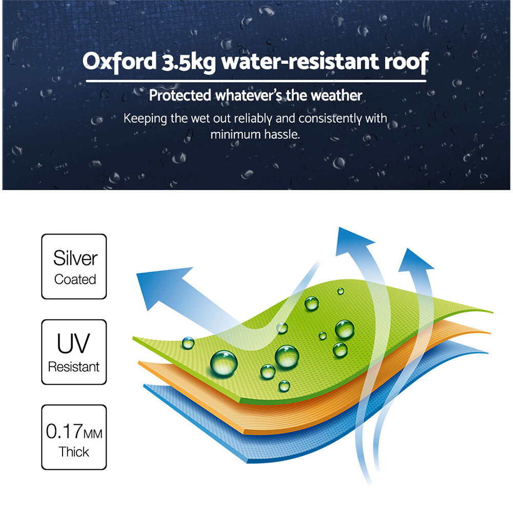Measuring 3m x 3m, the Gazebo is made of waterproof and UV-resistant silver-coated Oxford 3.5kg thick fabric that holds up well and firm. The tent offers all-round panel enclosure and also has a bonus mesh panel to keep irritating insects and bugs out as well as letting fresh air in. No more worries about hot summer days.