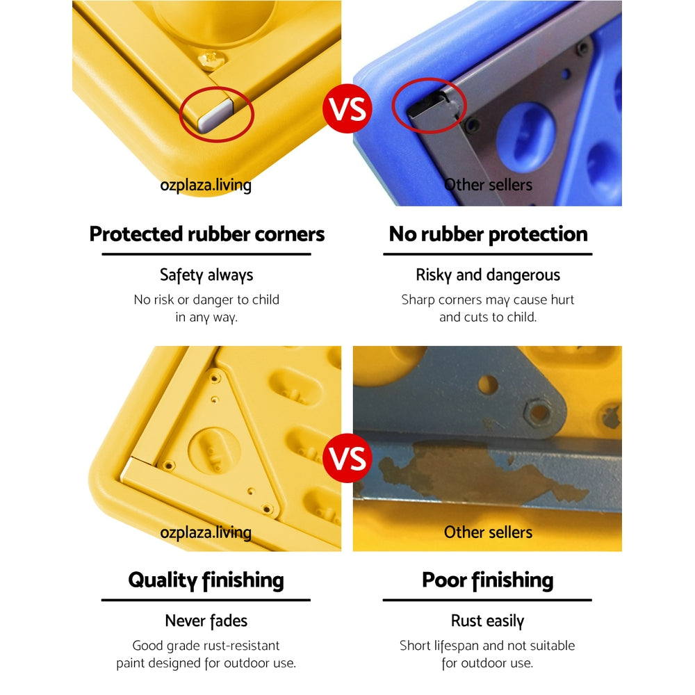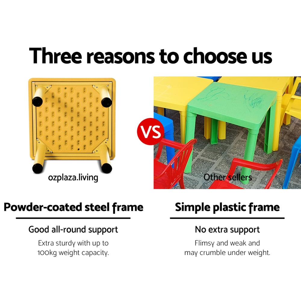 Made from HDPE plastic, the Table is designed to be durable and easy to maintain. In fact, the Table uses powder coated steel for its legs and under-table frame so that it can stand up to robust use. The Table actually has a maximum weight capacity of 100kg. That adds up to some hefty allowances for even the most weight-challenged kids.