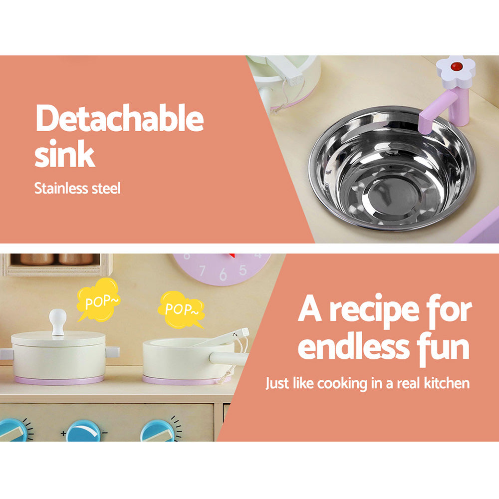 Keezi Kids Wooden Kitchen Play Set - Natural & Pink