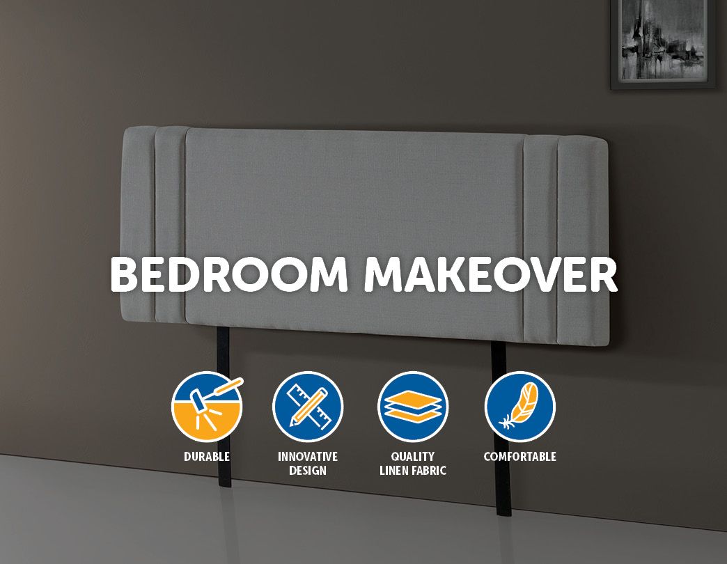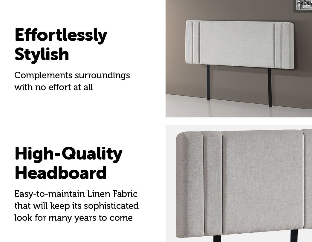 Linen Fabric Queen Bed Deluxe Headboard Bedhead - Beige