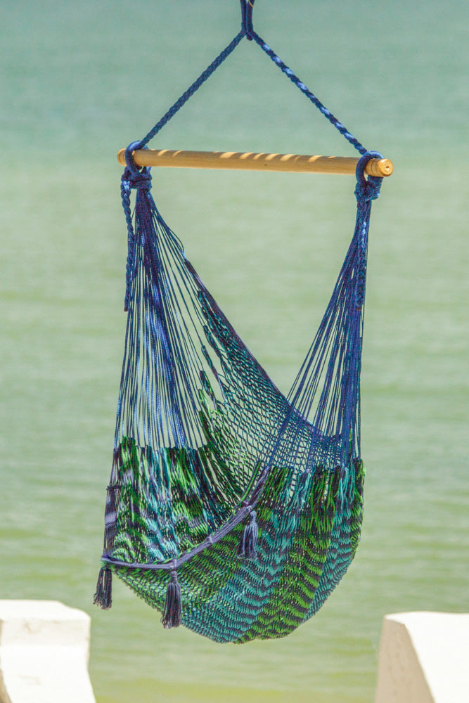 Mayan Legacy Extra Large Outdoor Cotton Mexican Hammock Chair in Caribe Colour