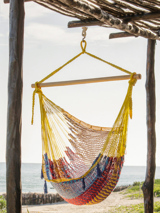 Mayan Legacy Extra Large Outdoor Cotton Mexican Hammock Chair in Confeti Colour