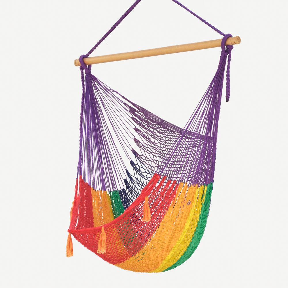Mayan Legacy Extra Large Outdoor Cotton Mexican Hammock Chair in Rainbow Colour
