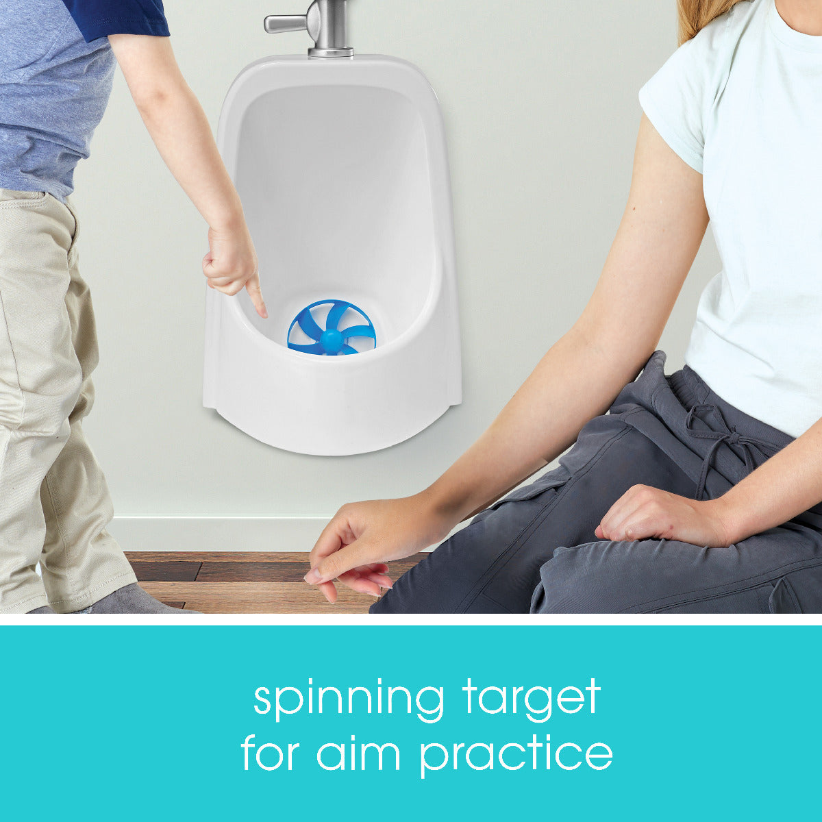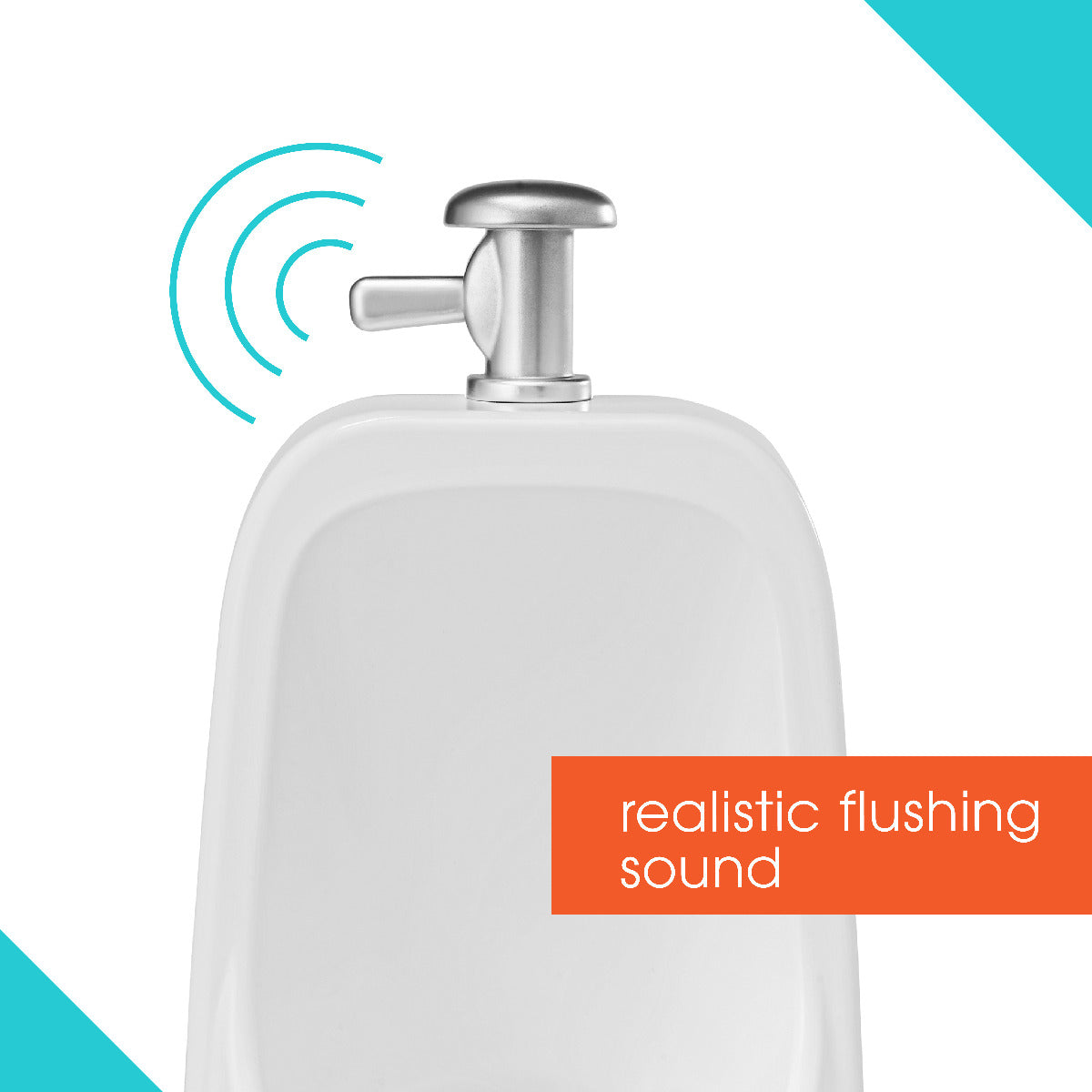 The Summer® My Size® Urinal makes it easier for little boys to learn to go standing up. The My Size Urinal is a modern, realisticlooking urinal. It has a flush handle and a realistic flushing sound – just like a real one. This toddler urinal attaches to a tile wall with adhesive strips. This training urinal is removable for quick and effortless emptying. It also Features a fun toilet target for little boys to practice aiming.