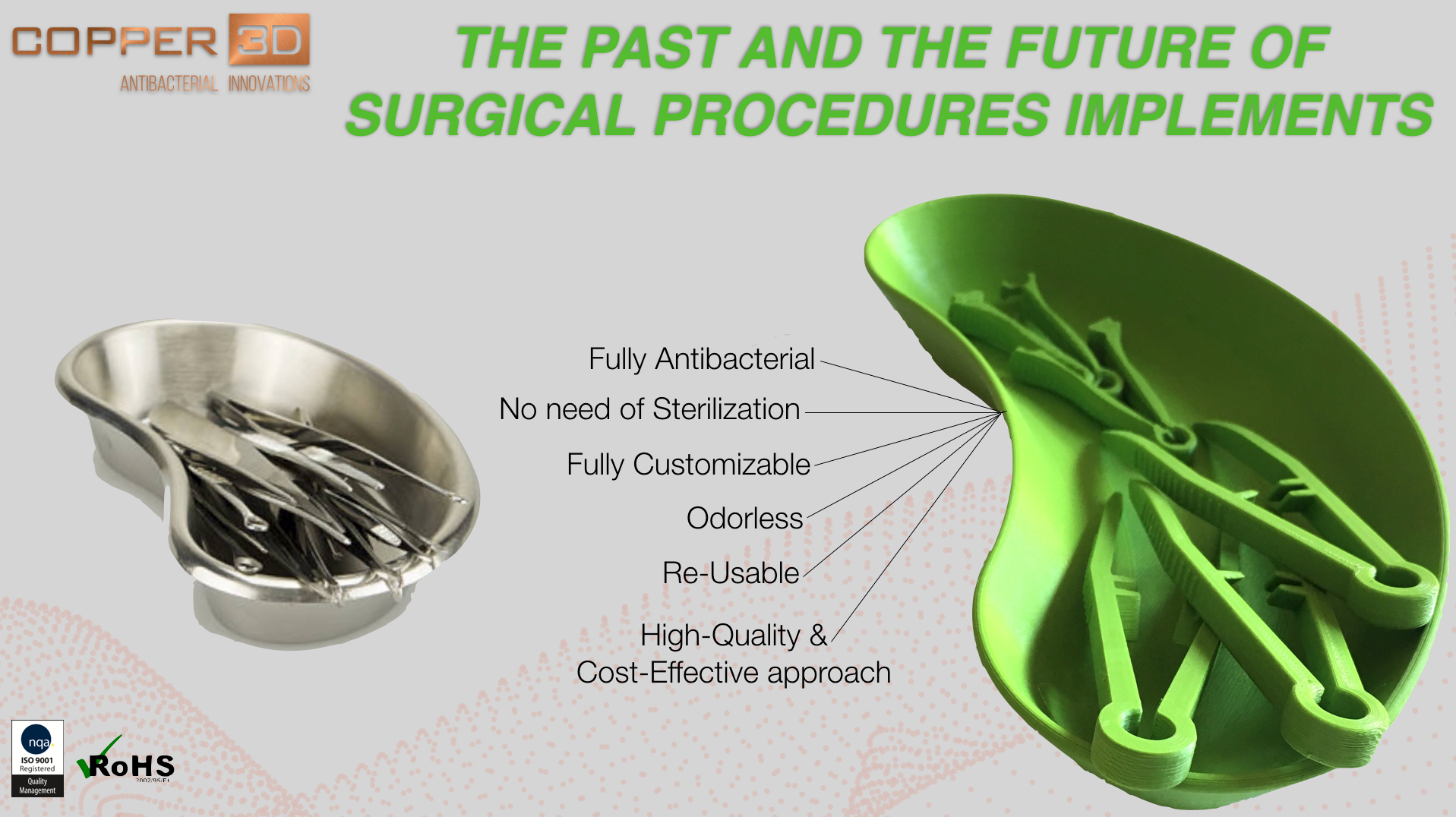 - Ideal for the manufacture of other medical applications where it’s dangerous to have bacterial contamination, such as postoperative prostheses, wound dressing and surgical equipment