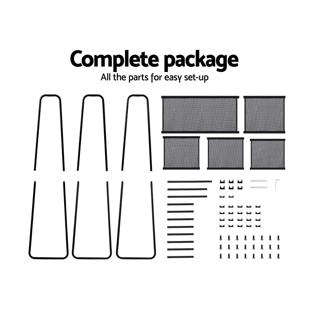 Need more clothing storage? Want a fast and easy option? Then look no further than our Metal Clothes Rack. The frame is made of sturdy powder-coated metal that can safely hold up your clothing and withstand robust use. The clothes rack has an anti-slip hanging bar and U-shaped base for extra stability so that your clothes do not end up on the floor. There are also five plastic storage shelves perfect for storing shoes, hats, folded clothes or other fashion items. The neutral black tone means the clothes rack will fit in with any décor and will look stylish even when left out in the open.