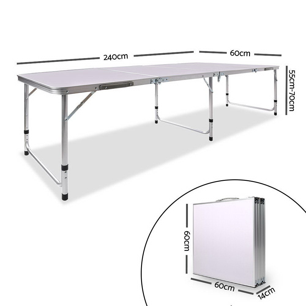 Made of strong aluminium throughout, the Zeta Camping Table can handle up to 50kg in weight with its very spacious, rust-resistant MDF table top. Better still, the 240cm long Camping Table has three adjustable height settings of 55cm, 62cm and 70cm to accommodate various user environments. Not least, the rounded corners ensure the Camping Table is safe to use around kids and adults at all times.