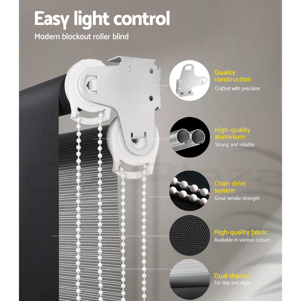 Roller Blinds Blockout Blackout Curtains Window Double Dual Shades 0.9X2.1M GRDG