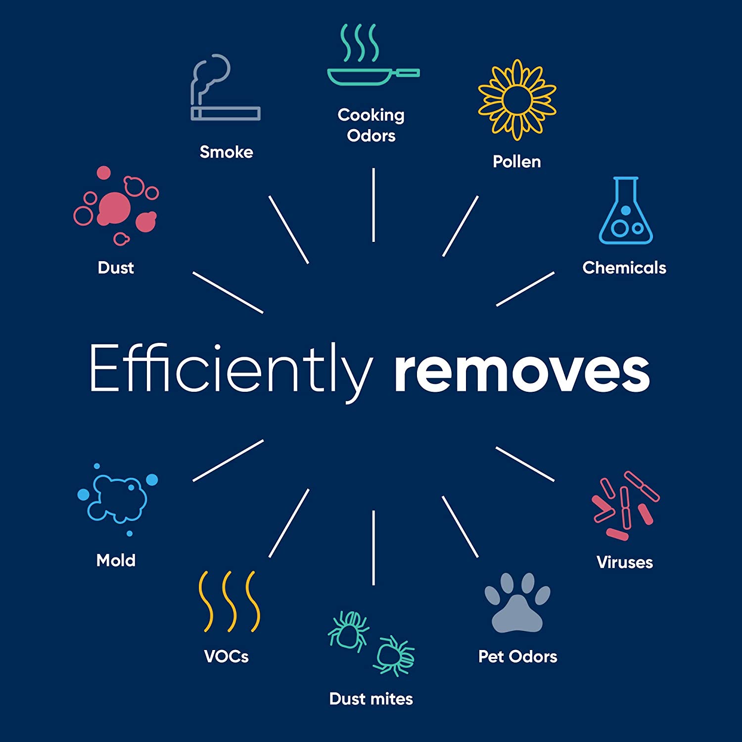 The filter captures up to 99.9% of airborne particles, dust, pollen, smoke, odours and pet dander, True HEPA Filter & Active Carbon Filter with a clean air delivery rate (CADR) of 240m³/h.