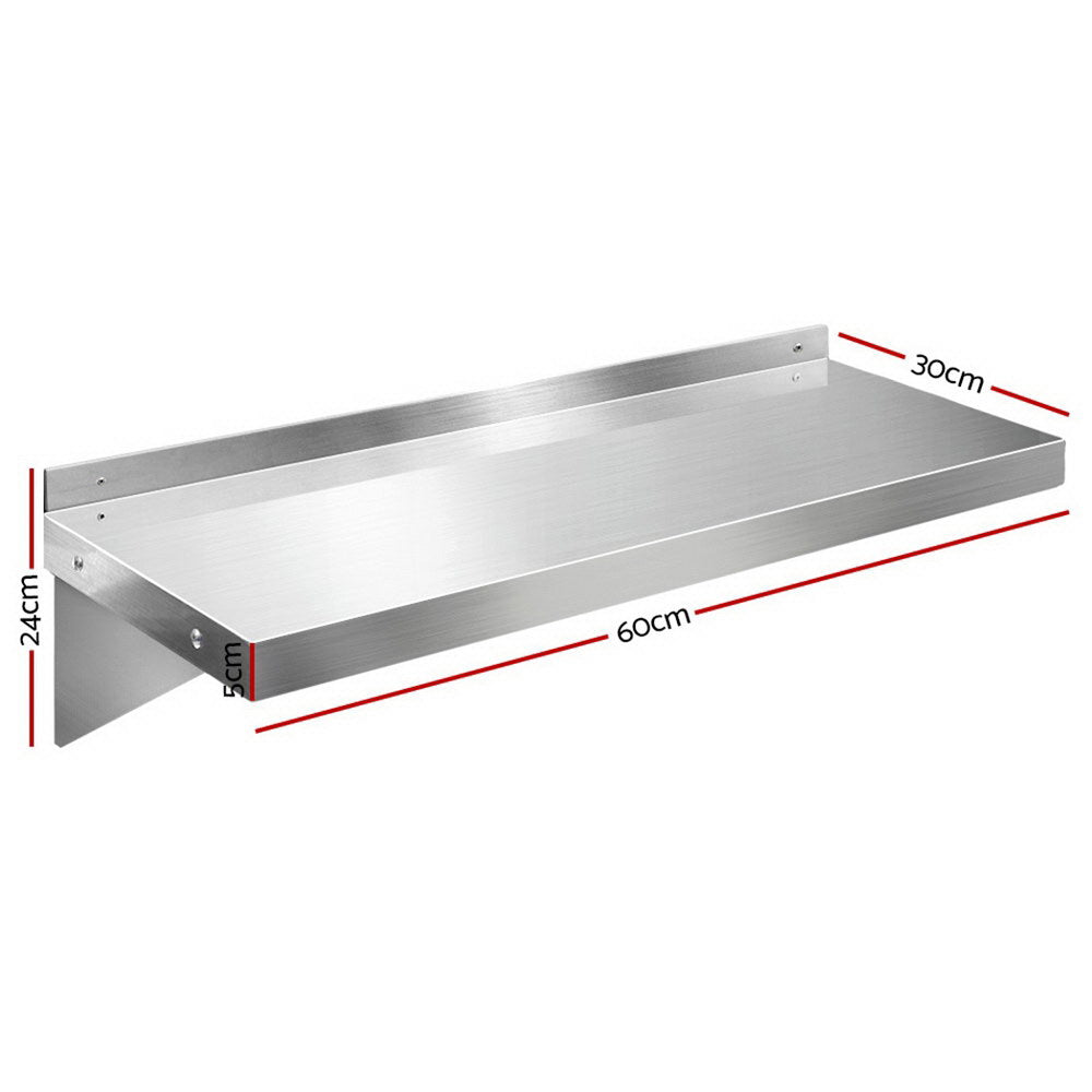 Stainless Steel Wall Shelf Kitchen Shelves Rack Mounted Display Shelving 600mm