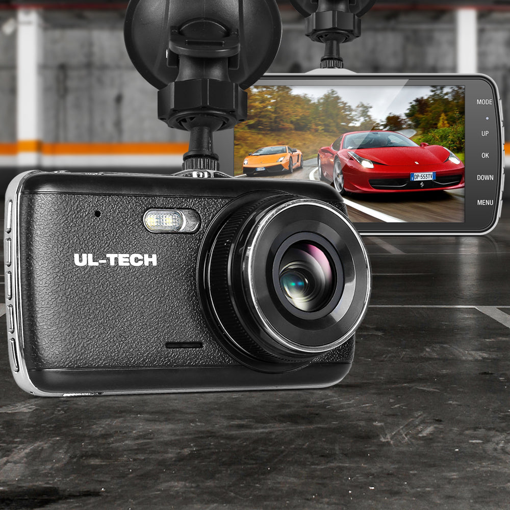 UL Tech 4 Inch Dual Camera Dash Camera - Black