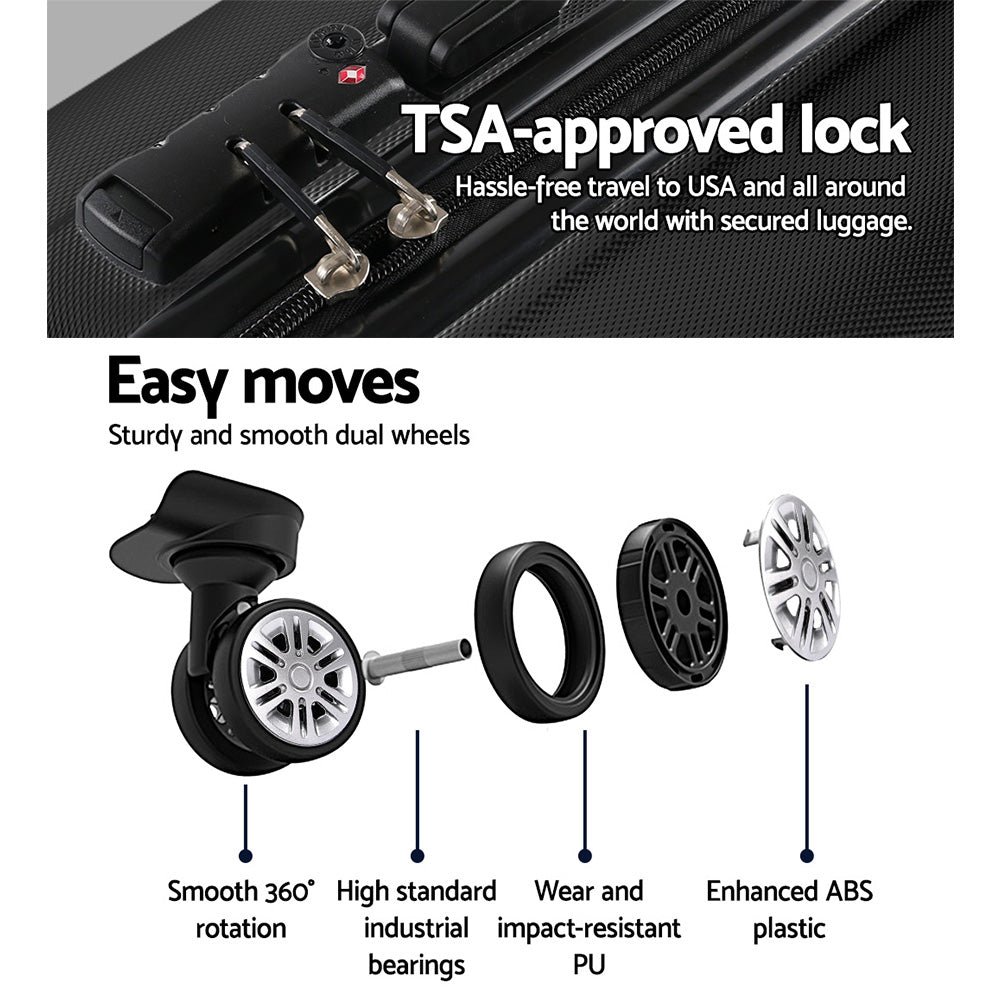 Wanderlite 2 Piece Lightweight Hard Suit Case Luggage Black