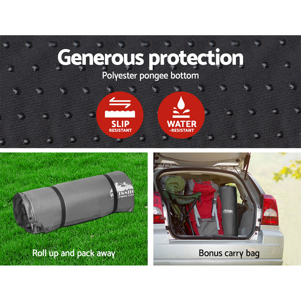 The inflating mat is waterprrof and self inflates through two built in valves within